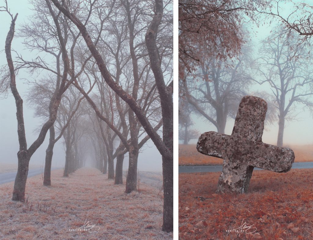 Herbstfarben sind im Nahinfrarotbereich ebenso intensiv wie in sichtbarem Licht, allerdings ungleich surrealer. Auch Nebel streut das Licht noch einen Hauch intensiver. Mehr Hintergrund zu dieser Technik der Falschfarbenfotografie gibt es im Werkzeugkasten.